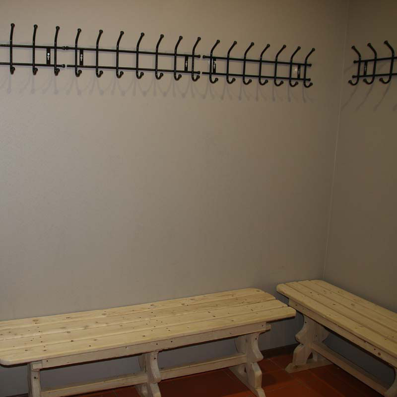 Возле входной зоны находится гардеробная комната. Места для одежды здесь хватит для большой компании, также в комнате установлена электросушилка для обуви с таймером.